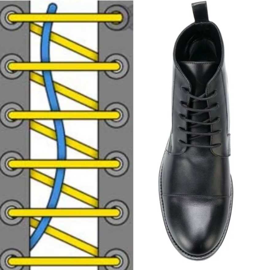 Пошаговые действия, которые помогут быстро зашнуровать ботинки методом скрещивания: