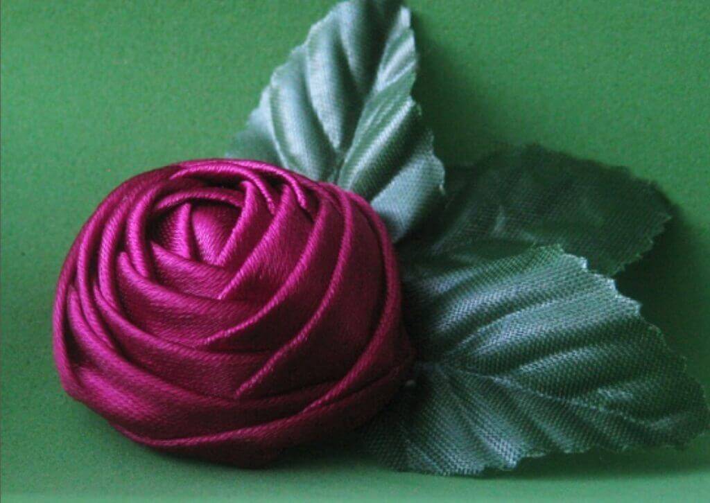 Роза, сшитая из атласных лент