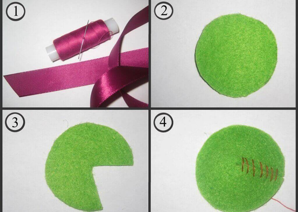 - Игла, ножницы, нитки под цвет ленты.