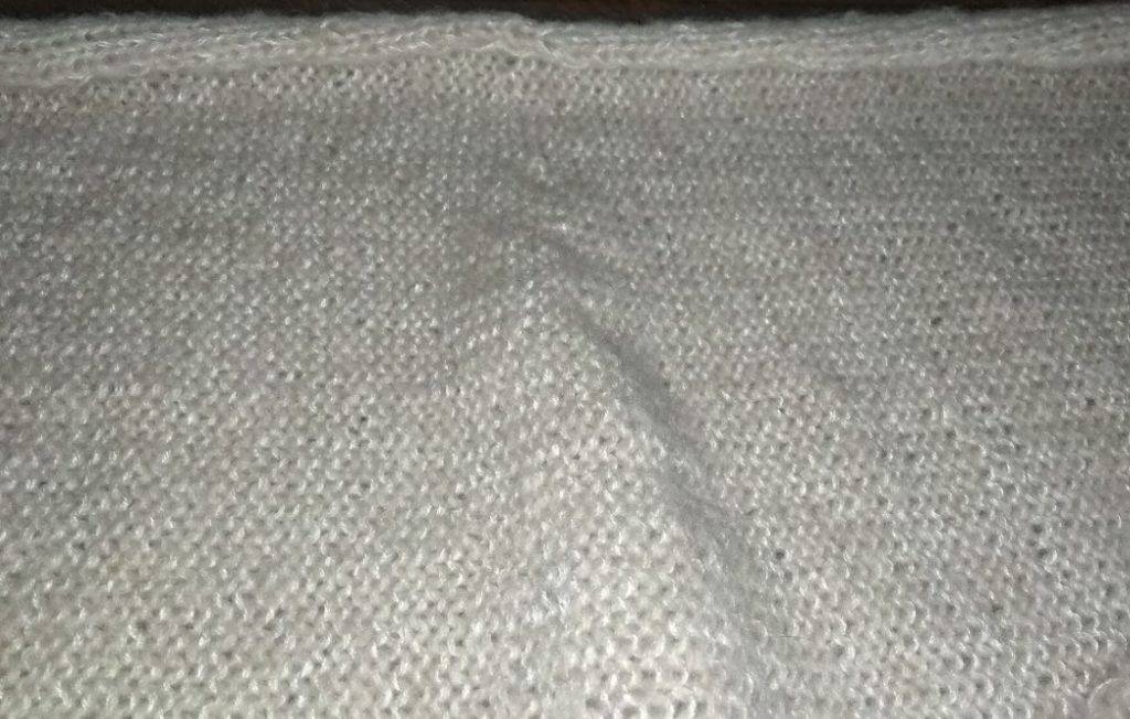 - Не доходя до края бокового шва 5 п, разворачиваюсь и вяжу до конца ряда, не забывая про убавки на горловине.