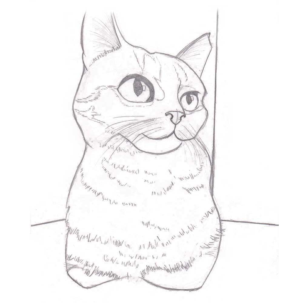 Этот рисунок я сделал на графическом планшете, тем не менее, кот получился неопределенного цвета, но именно такой кот и живет у меня дома. Вы же можете делать окраску кота такого цвета, какая вам больше понравится или просто затенить рисунок только простым мягким карандашом.