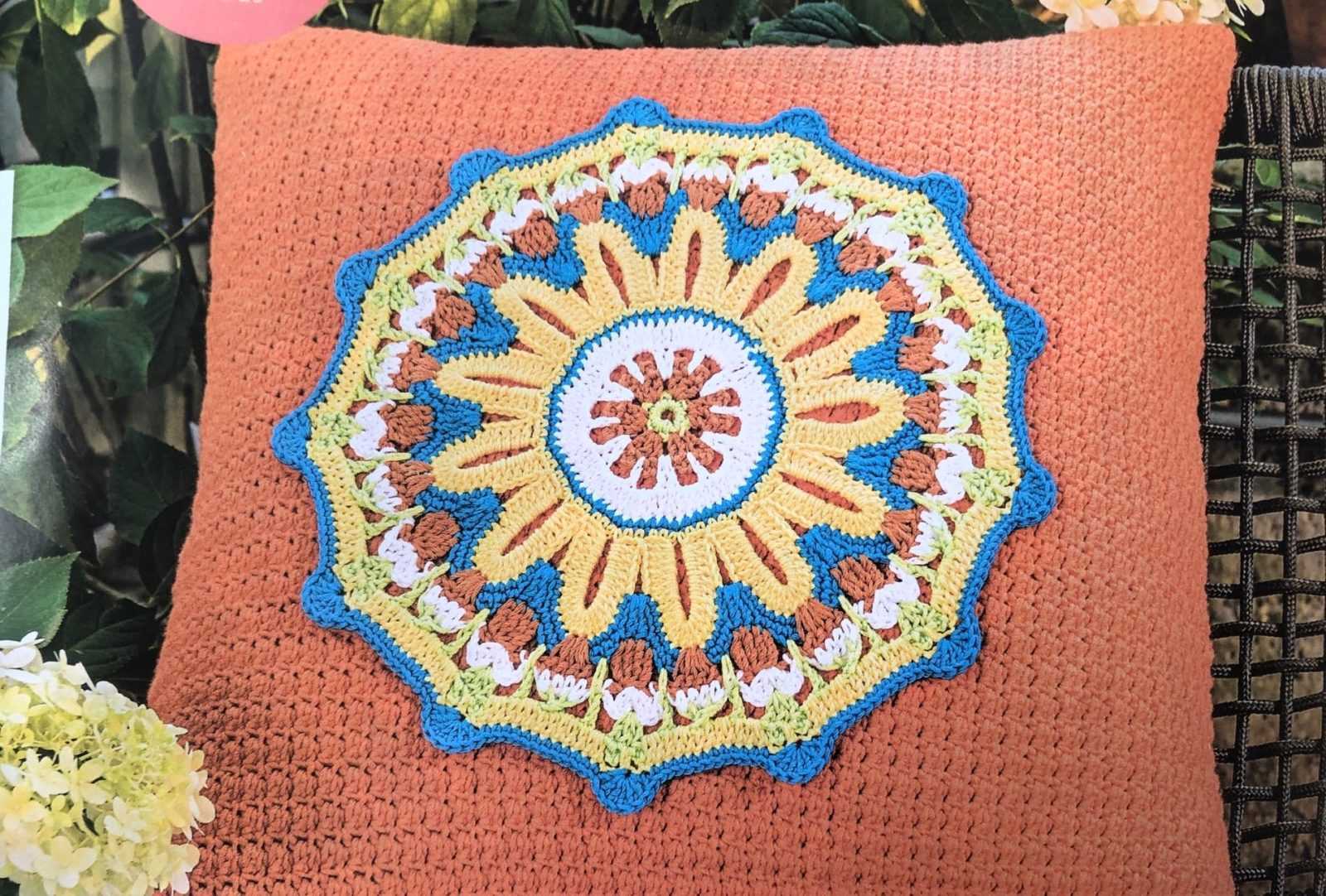 Эти красивые яркие подушки предлагается вязать хлопчатобумажными нитками (50 гр./ 73 м), спицы – номер 4,5.