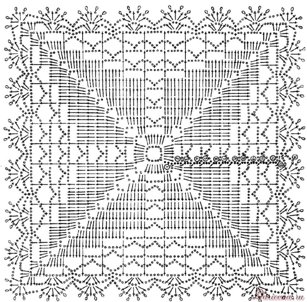 Можно взять более сложный узор квадратной угловой обвязки — из любой схемы квадратной салфетки.