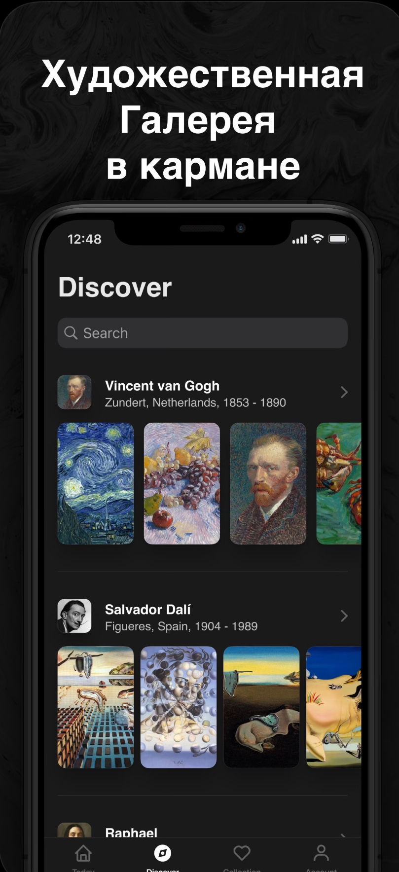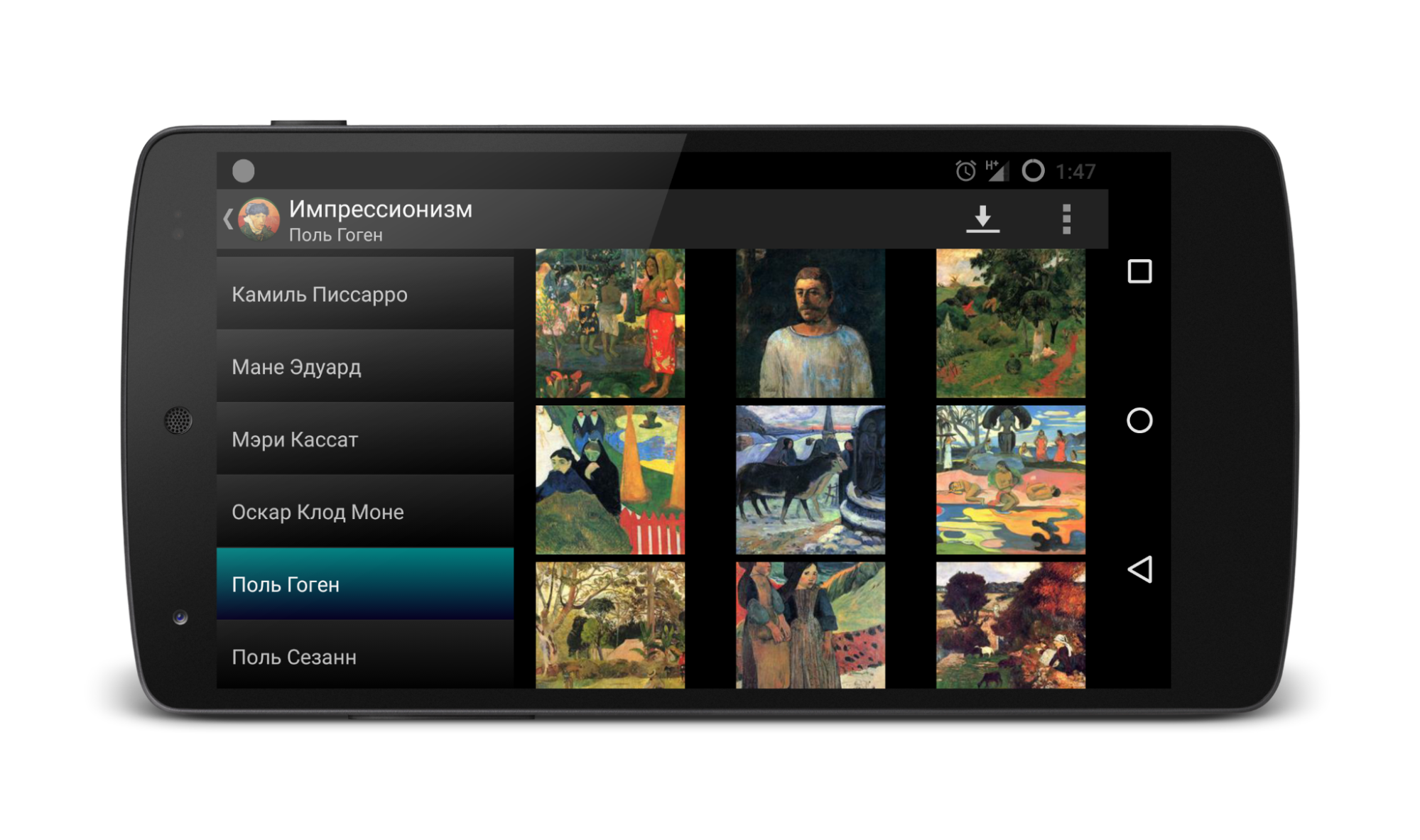 В этом приложении собраны произведения величайших художников разных эпох. Более 7 000 картин распределены по коллекциям: Импрессионизм, Русская живопись, Портретная живопись, Барокко.