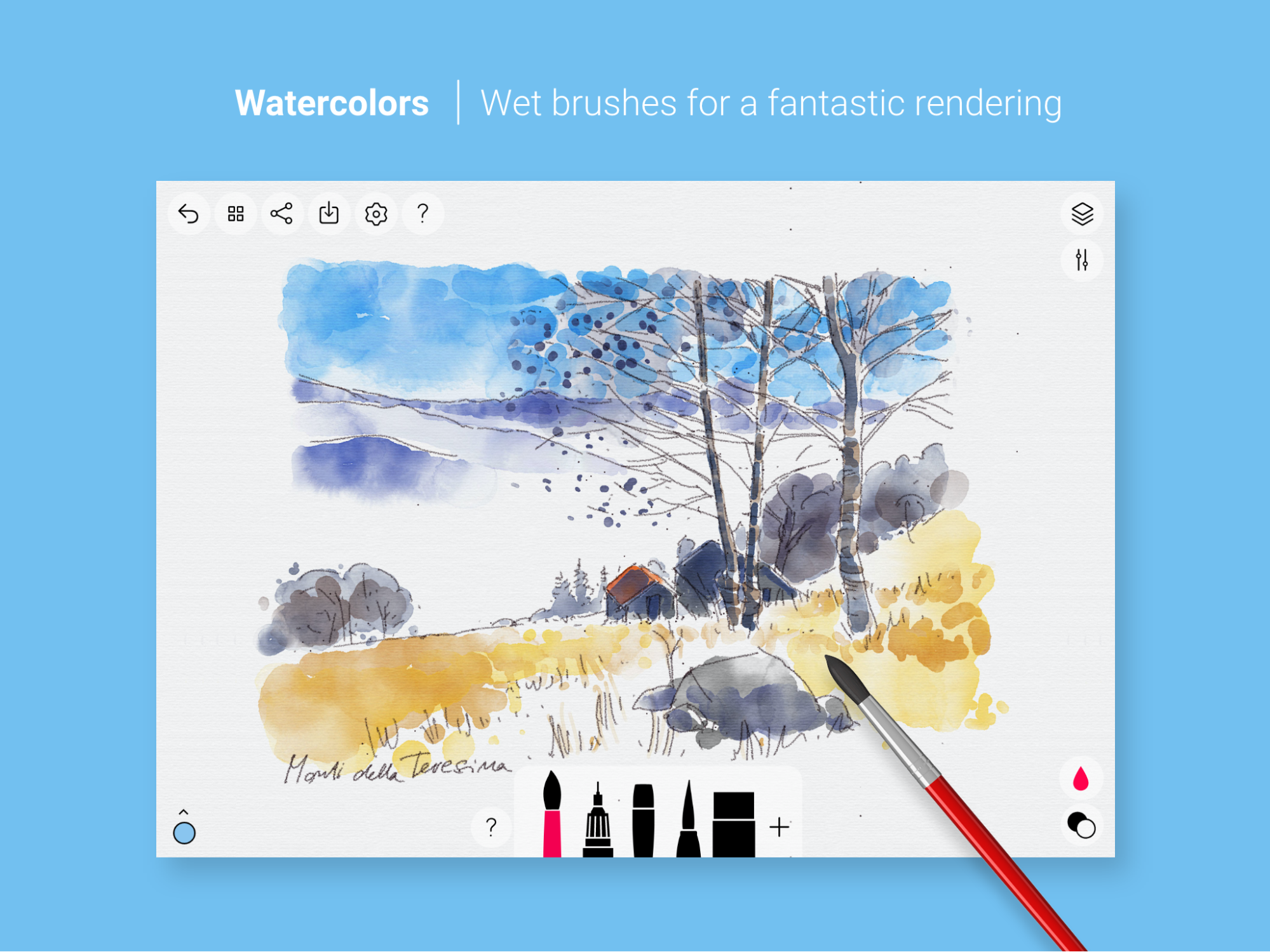 Минималистичное приложение отлично подойдёт для новичков в рисовании. Инструментов для работы не так много, но имитация мазков создаёт ощущение, что ты рисуешь прямо на холсте.