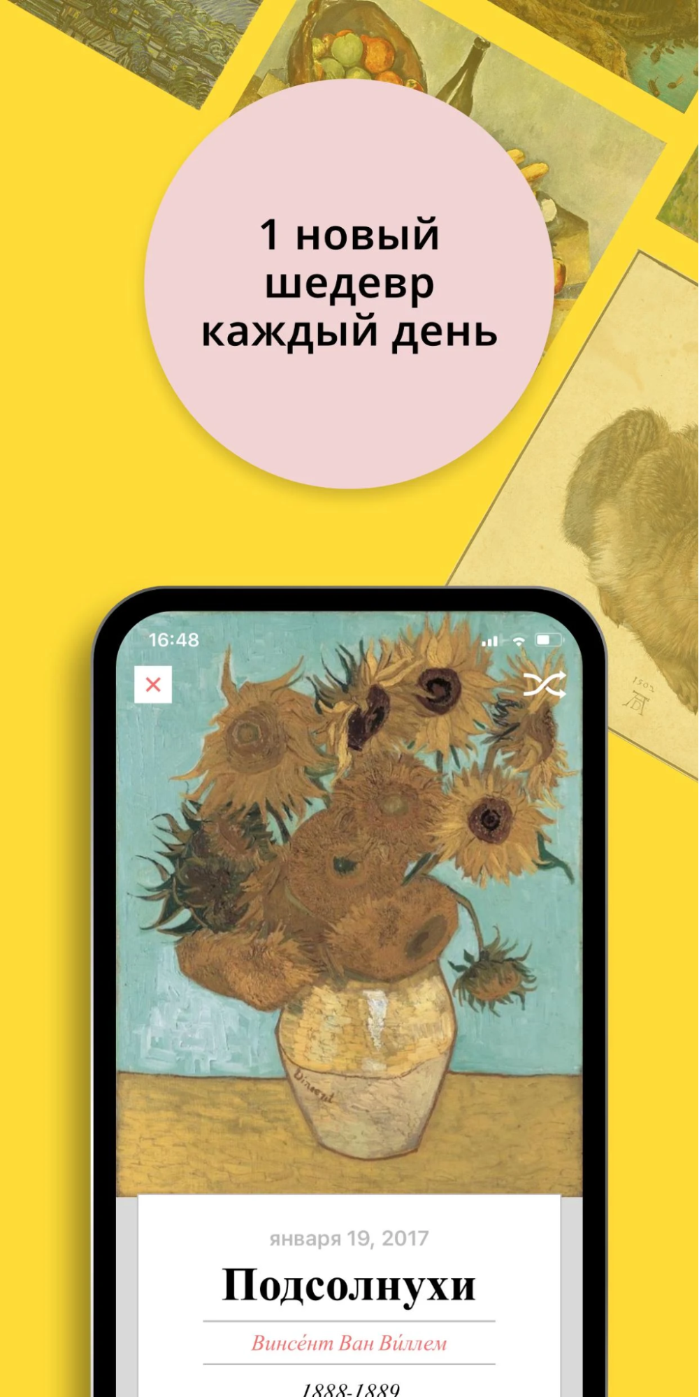 Расширить кругозор, узнать историю создания картины или поставить новые обои на телефон — будет интересно даже тем, кто не художник. Приложение на английском языке.