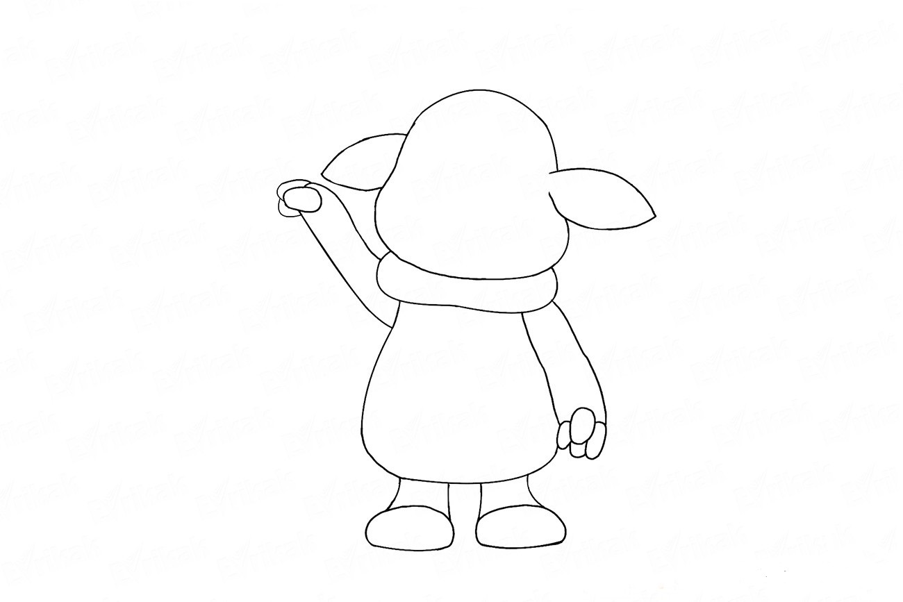 Переходим к изображению туловища главного героя. Для этого ниже головы изобразим шею – у Лунтика она не очень длинная и пушистая. Используем такую же зигзагообразную линию, показывающую мягкость шерсти.