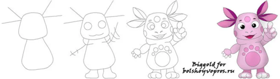 Как нарисовать Лунтика поэтапно карандашом для начинающих?