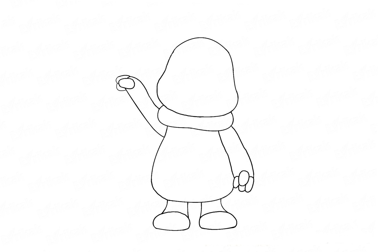 Следующий шаг — нарисовать руки Лунтика. Руки Лунтика имеют форму амперсанда «&», поэтому нарисуйте две прямые линии, соединив концы полукруглых форм ног.