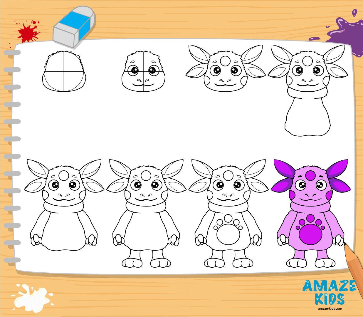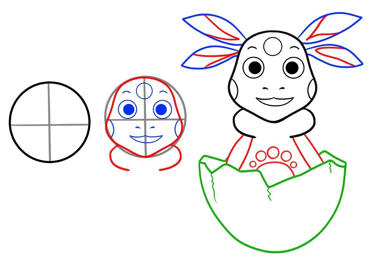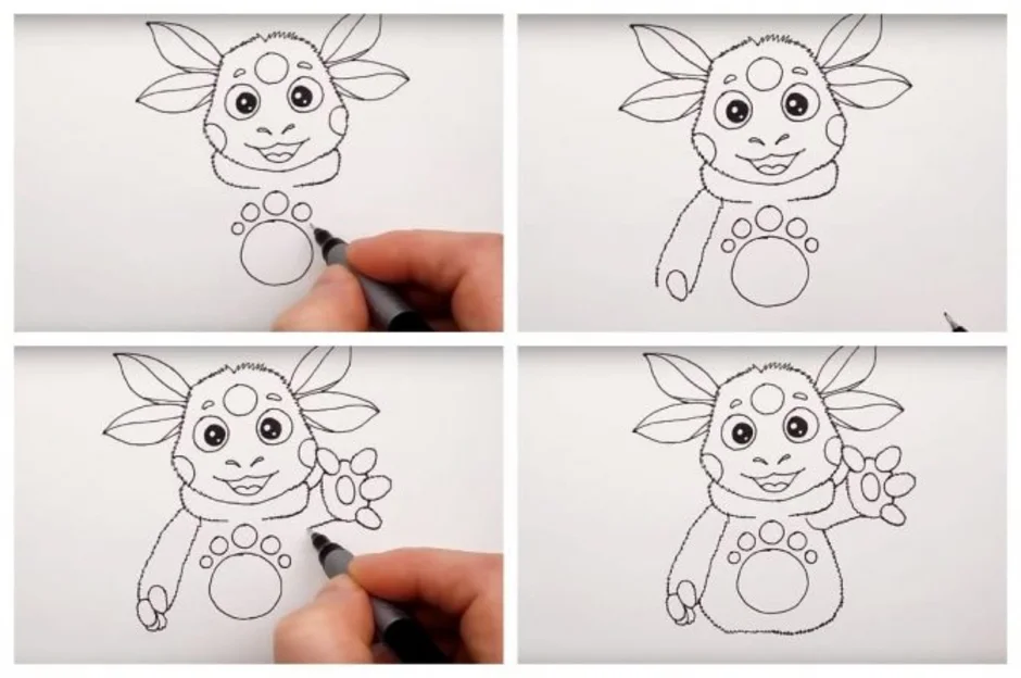 Самый простой способ научиться рисовать Лунтика – поэтапно.