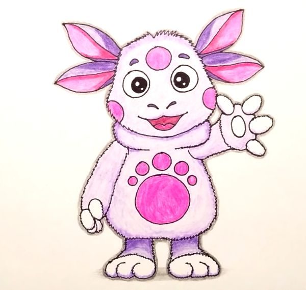 Симпатичный фиолетовый зверек, нарисованный Твоими руками, понравится всем маленьким поклонникам «Лунтика». Отличный бонус к подарку на День рождения, не так ли? А если Ты тоже в восторге от этого мультфильма и его удивительного главного персонажа, почему бы не украсить им свою комнату?