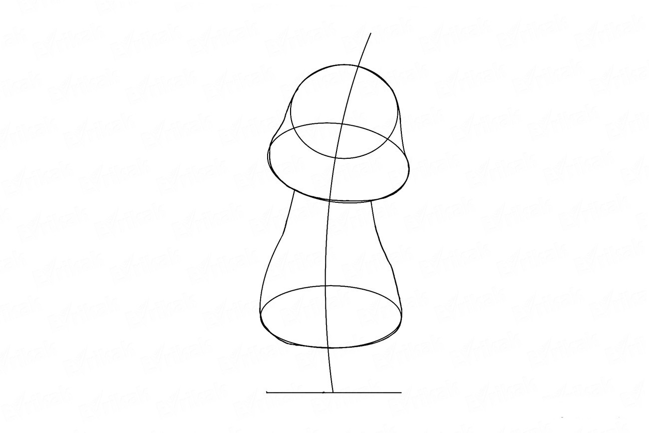 Теперь изображаем корпус героя, плавными линиями соединяя геометрические фигуры. Ось должна проходить прямо по центру тела изображения персонажа.