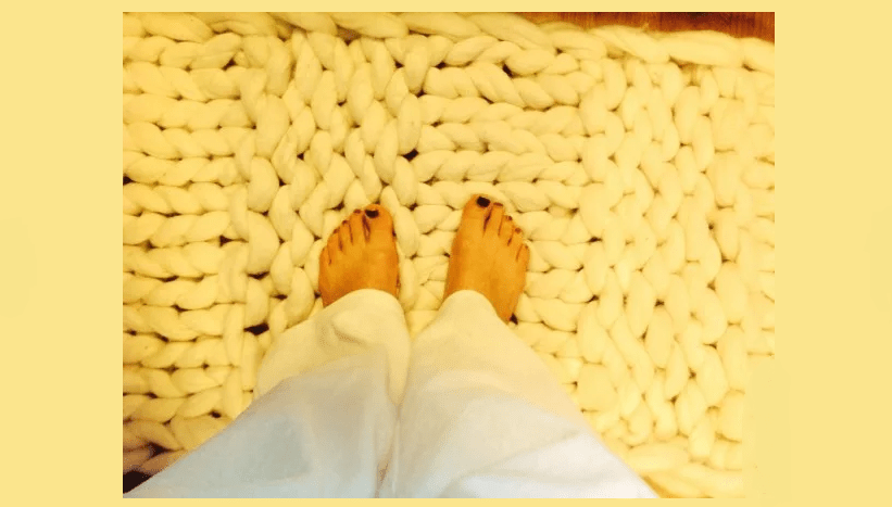 Пледы из толстой пряжи получаются довольно тяжелые, порой достигая веса более трех килограммов. Такие чаще выбирают как декоративные элементы интерьера: покрывала, чехлы и коврики. Достаточная толщина готового изделия позволяет стелить плед на пол.
