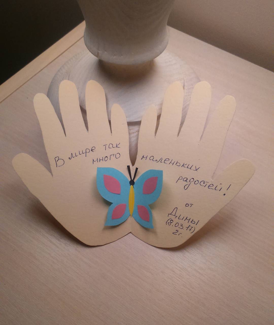 Мне очень понравилась идея открытки в форме рук. Она несет какую-то особенную теплоту и доброжелательность.