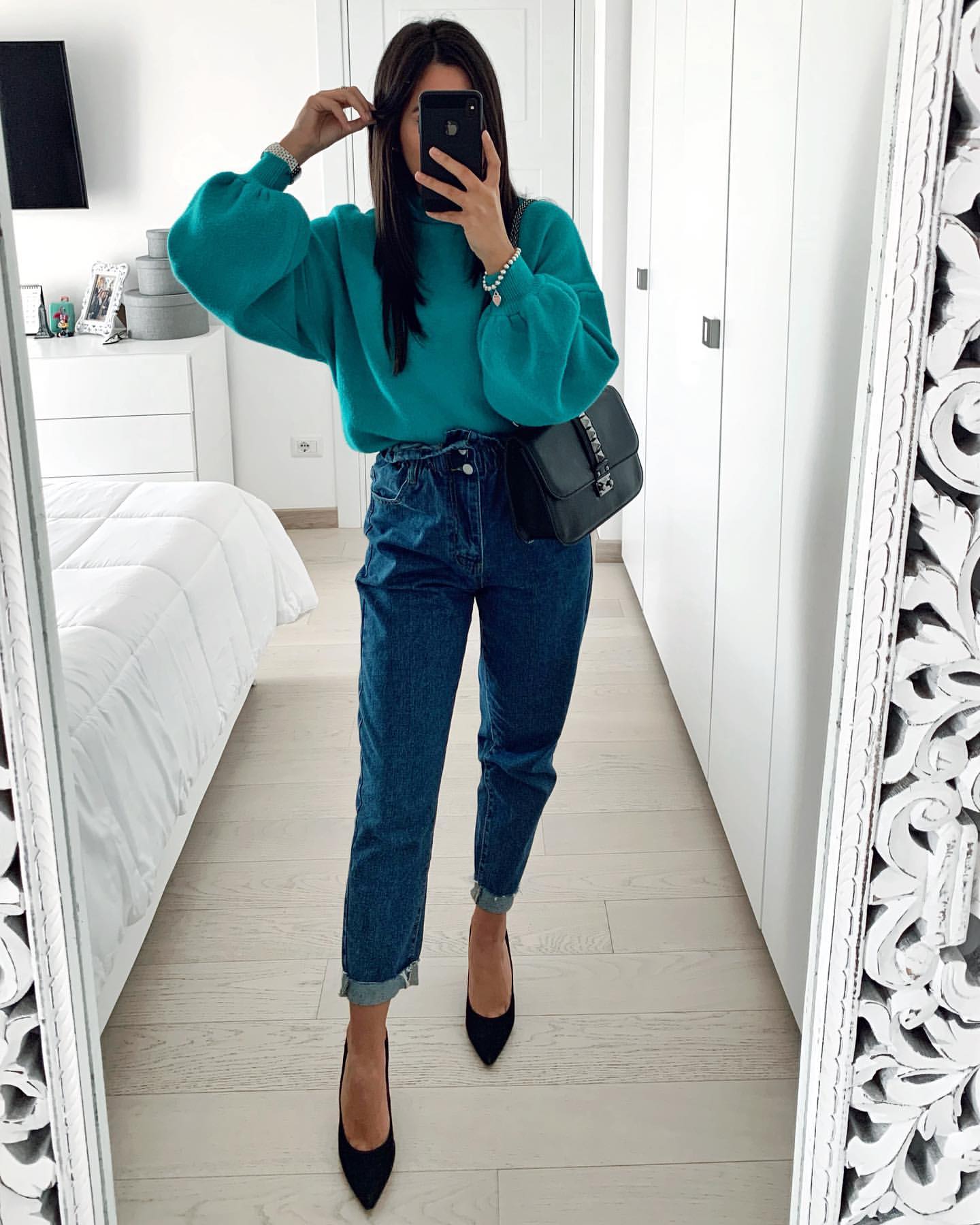 Популярным сочетанием всегда были и будут джемпер и джинсы. Именно в сочетании с джинсами носить оверсайз будет наиболее выгодно.