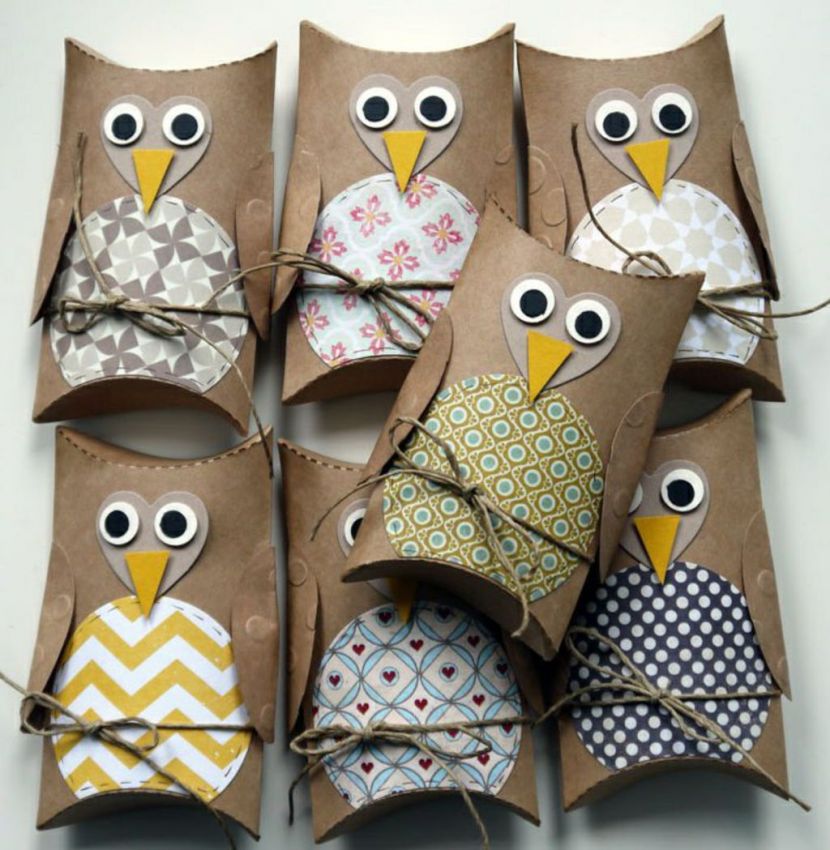 И последний момент – красные лапы, приклеенные снизу, как у кошки, но форма другая – с острыми краями. При желании сову делают более модной: на нее еще и «одевают» красивые украшения.