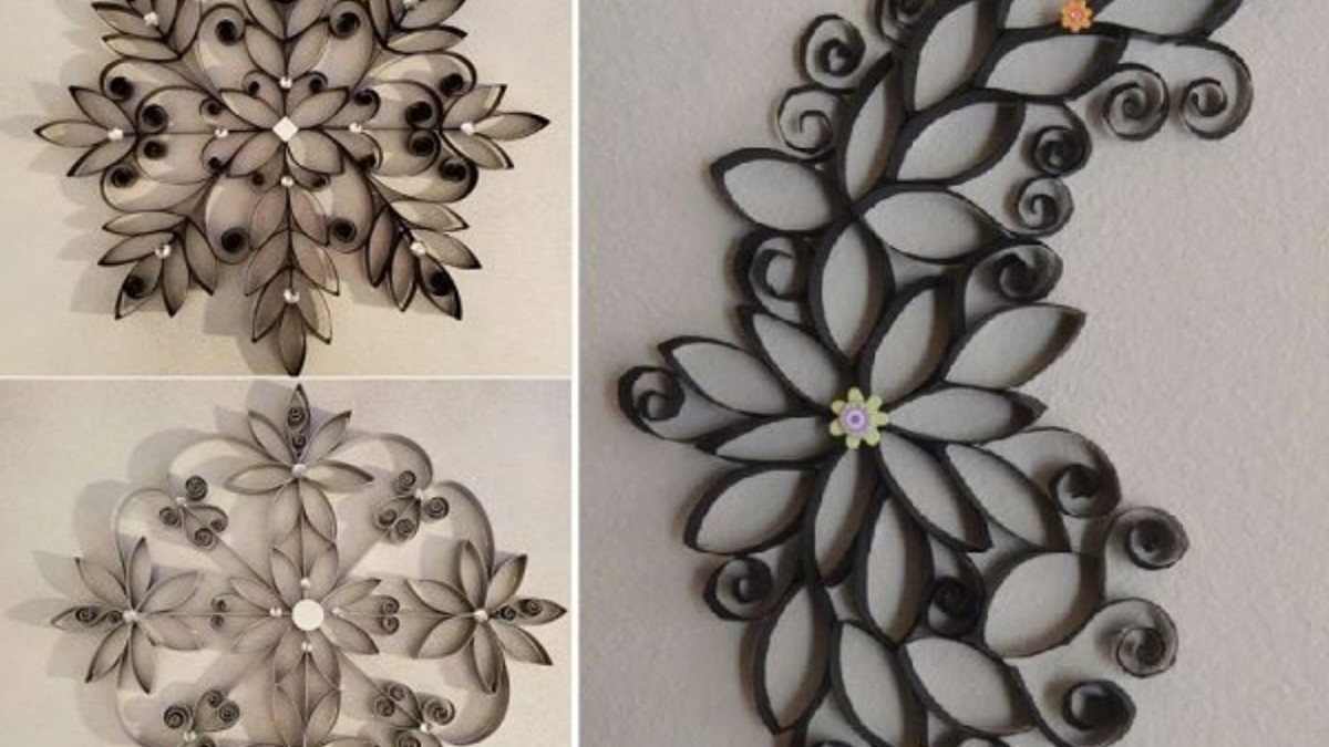 Очень красиво смотрятся картины квиллинг. В качестве сырья для спиралей можно взять рулоны туалетной бумаги. Или вы можете, не беспокоясь, разрезать кольца, сжать их по бокам и приклеить тепловым пистолетом. В конце концов покрасьте.