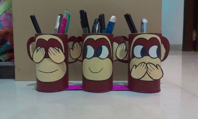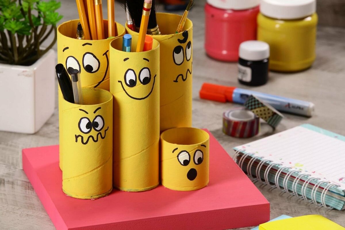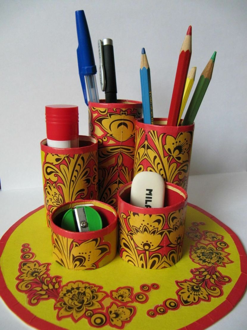 Для поддержания порядка на письменном столе вам понадобится органайзер — его можно сделать своими руками и из картонных основ от туалетной бумаги: