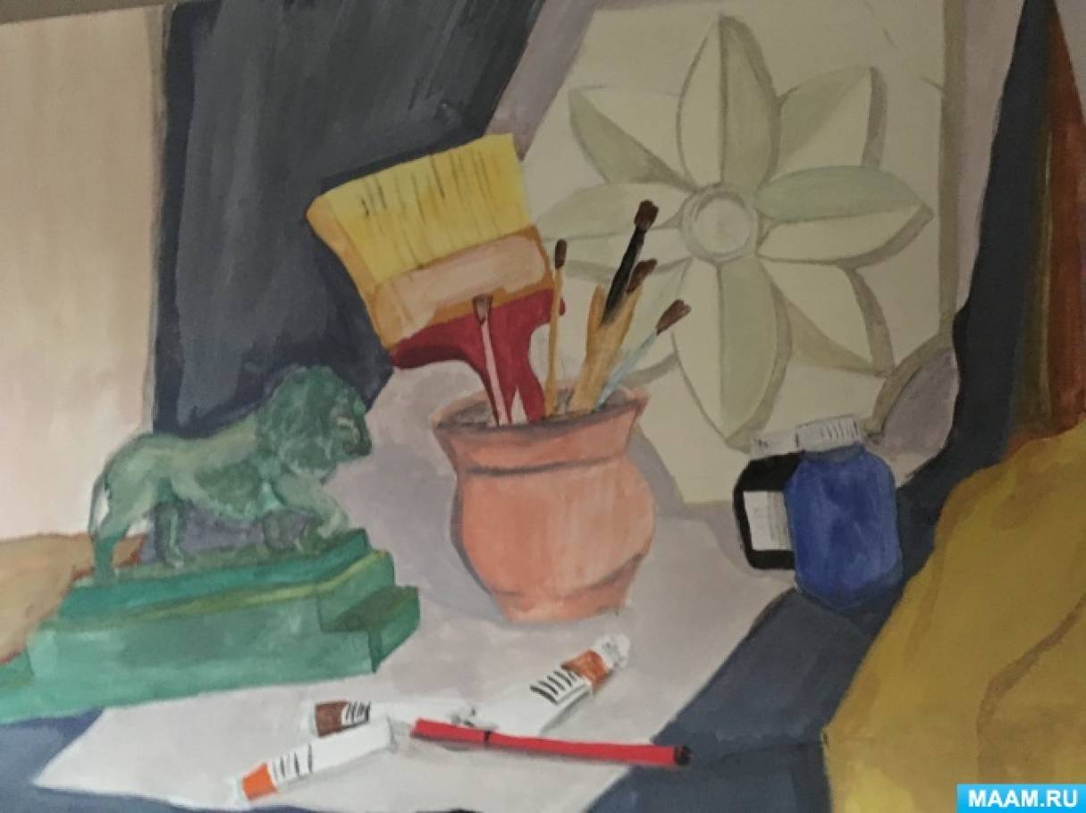 Полина Д., 13 лет «Натюрморт с атрибутами искусства»