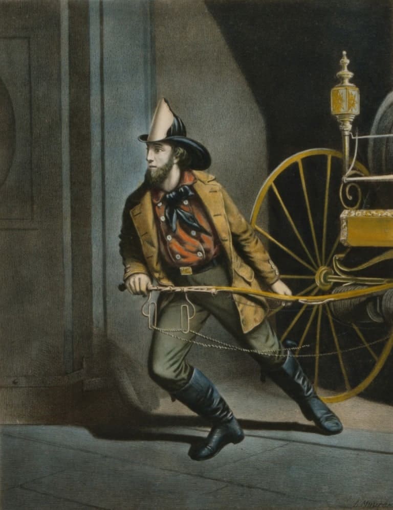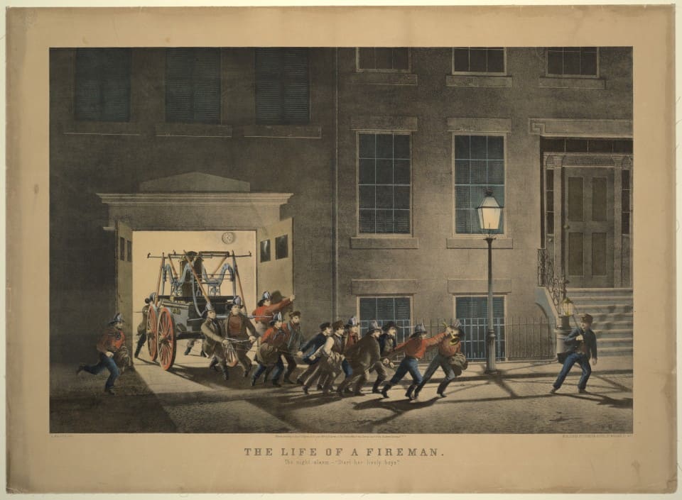Серия гравюр “Американский пожарный” (The American Fireman). Всегда готов (Always Ready). Луис Маурер, 1858 год.