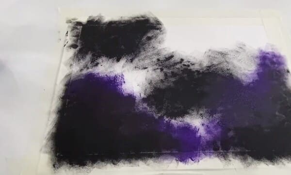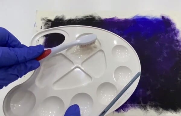 Шаг 4. Далее берем сиреневый цвет. Или мы можем смешать черную и синюю краски. Тень будет светлее и в образовавшихся пустотах сделаем отпечатки.