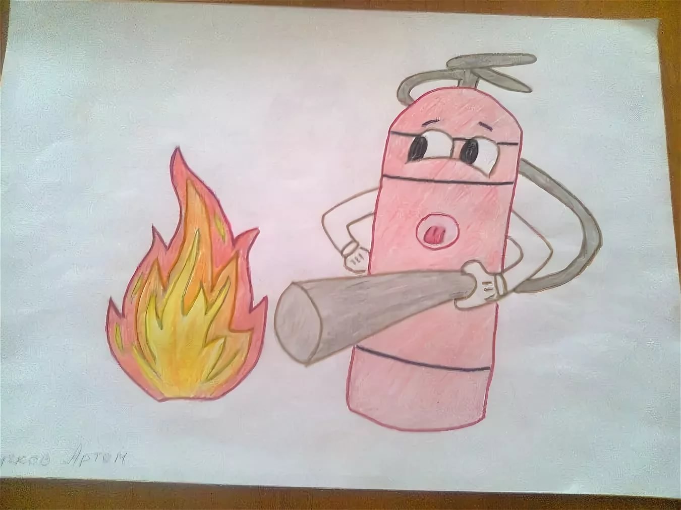 На рисунке изобразить класс химии: парты, стол, бутылочки с растворами, горелку и т.д. При этом можно нарисовать учителя химии, который зажигает горелку у открытой форточки. Свою очередь штора ветром приближается к столу, на котором проводится эксперимент. Надпись на колбочке ученика повёрнута вниз и руки у него без защитных перчаток.