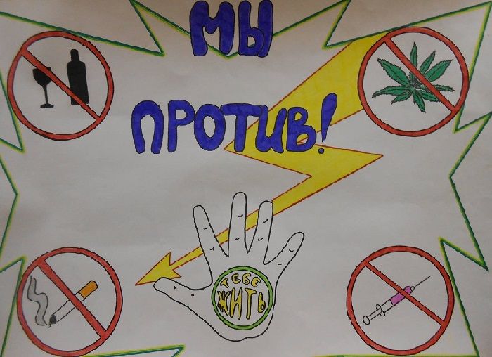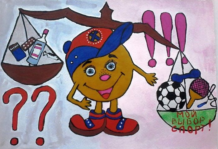Изображение курения, алкоголизма, наркомании — обратная сторона ЗОЖа, но ее часто используют. Дети мотивируют людей покончить с вредными привычками, показывая на рисунках их пагубное влияние.