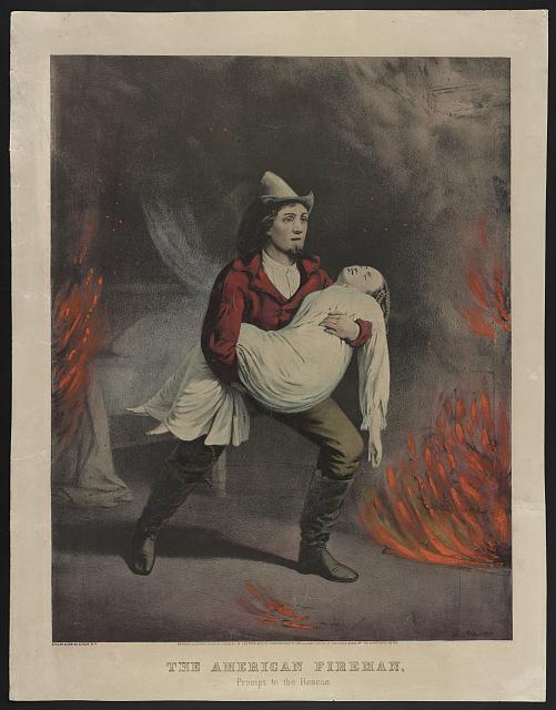 Серия гравюр “Американский пожарный” (The American Fireman). Быстрое спасение (Prompt To The Rescue). Луис Маурер, 1858 год.