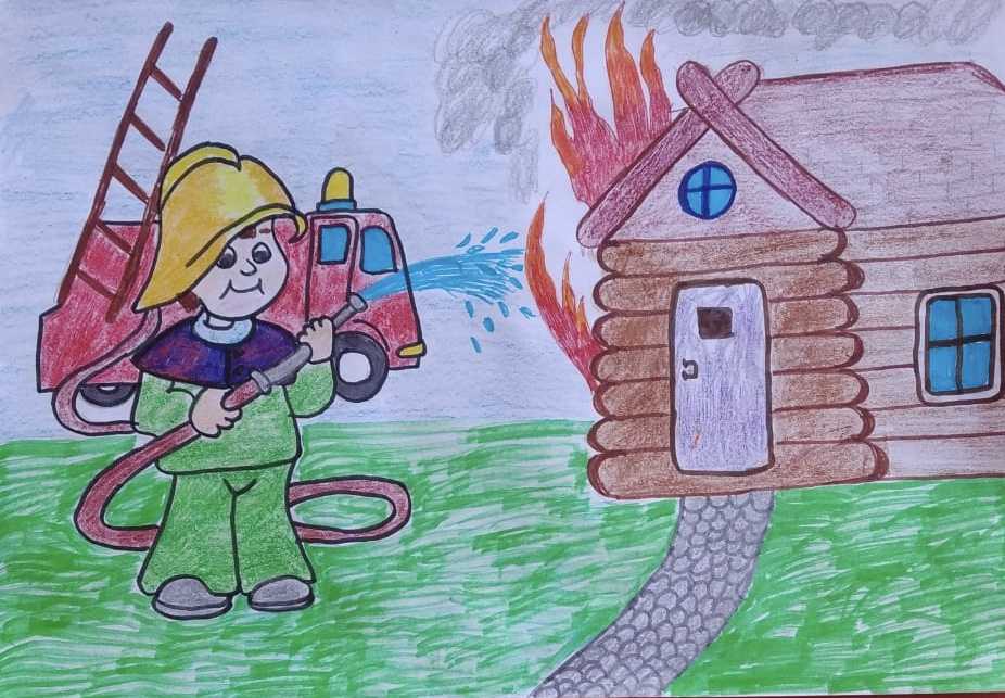 Заключительный этап того, как нарисовать пожарника — разукрашиваем