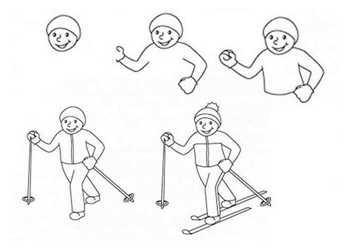 Дети рисуют крепкого здоровячка, обливающегося водой. Можно нарисовать взрослого человека, купающегося в проруби, обтирающегося снегом или ходящего босиком по холодной земле.