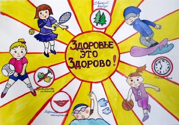 Дети среднего и старшего школьного возраста рисуют сложные плакаты. На них изображают несколько частей ЗОЖа или сразу все компоненты. Для этого лист бумаги или ватман делят на нужное количество частей, на которых рисуют желаемую композицию.