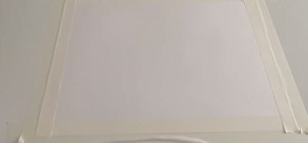 Шаг 1. Мы рекомендуем использовать более плотную бумагу, желательно ватман. Положите лист горизонтально. Отводим от края 1 см и обклеиваем скотчем.