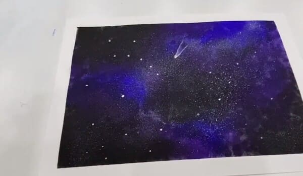 На основе этой идеи можно изобразить ракету или планеты. Это необязательно. Также понравился вариант, когда на подобном фоне рисуются созвездия.