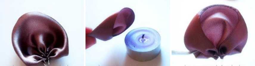 Некоторые девочки используют зажигалку, но мне кажется, что свеча дает более ровное пламя, да и складывать ткань можно гораздо аккуратнее, когда руки свободны.