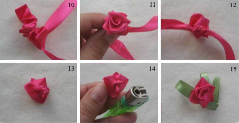- Соберите остальные 15 лепестков из лент для розы канзаши.