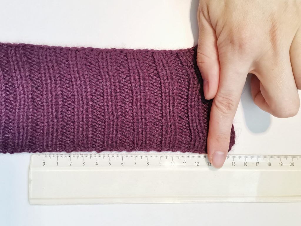 Прежде чем приступить к вязанию шапки, свяжите небольшой образец, определите плотность вязания и рассчитайте, сколько петель нужно набрать для вязания шапки нужного размера.