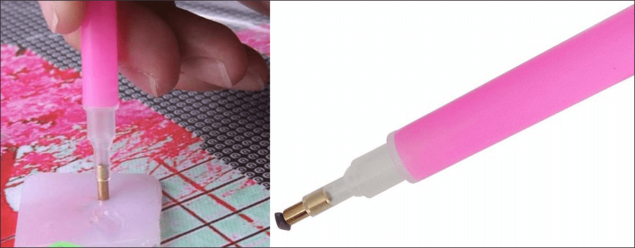 В наборе новичка необходимо иметь не только пинцет с металлическим тонким захватом, но и клеевой карандаш с липким кончиком, с помощью которого можно легко донести элемент до нужной области заполнения.