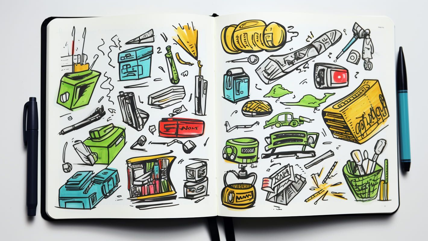 Делайте наброски в скетчбуке разными инструментами для рисования. Например, только простым карандашом или только маркерами, или сочетайте их.