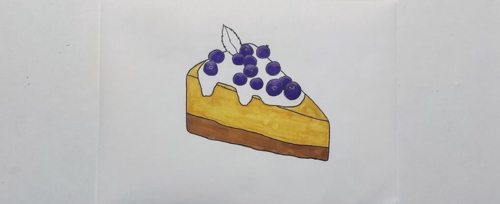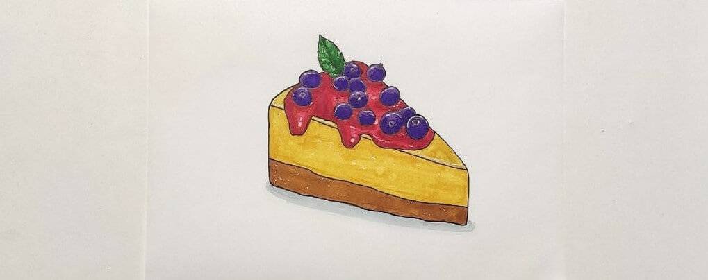 3-й этап – закрашиваем маркером пирог и добавляем тени
