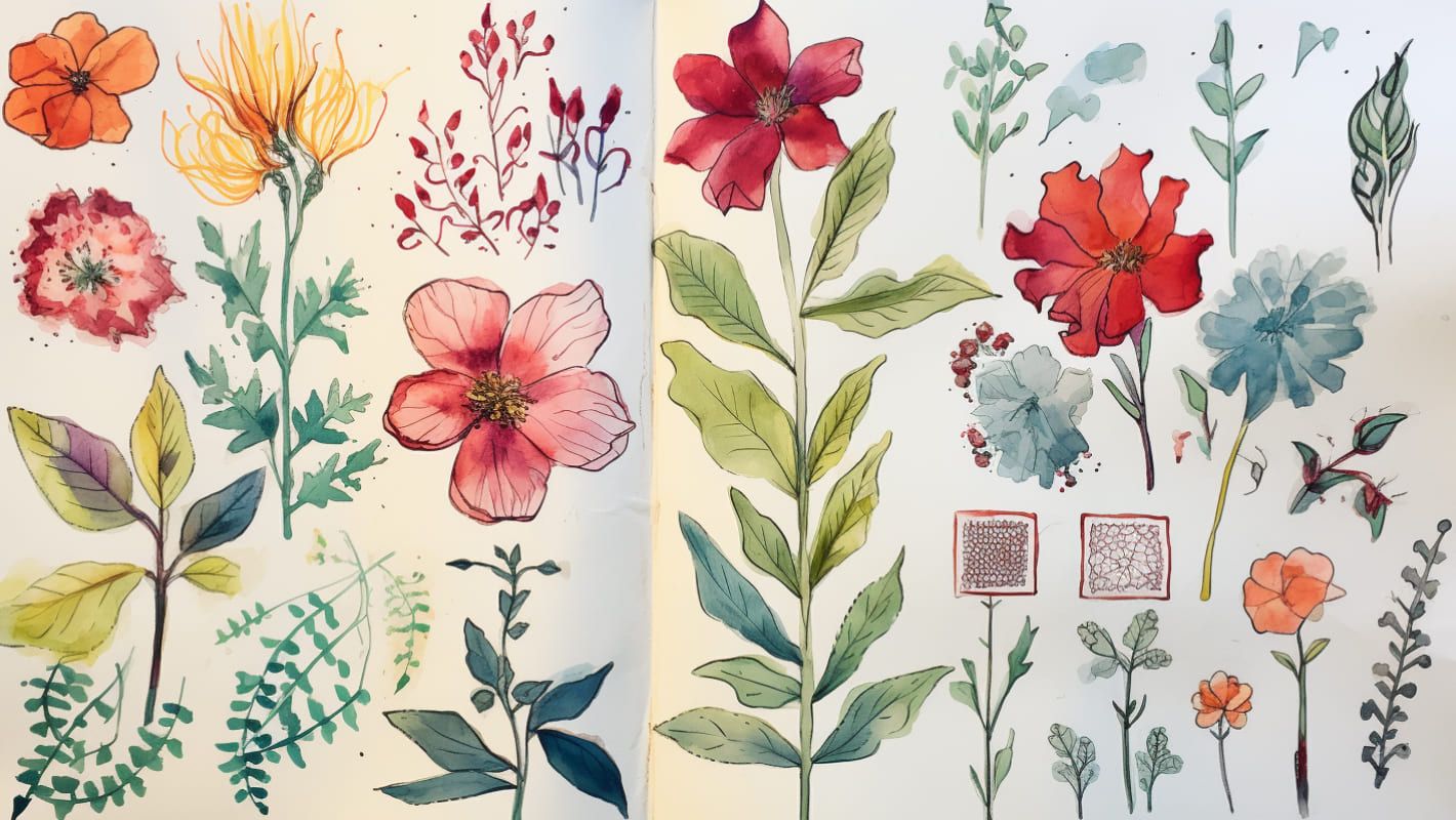 - Флористический скетчинг — рисунки композиций из цветов. Подходит для флористов и декораторов.