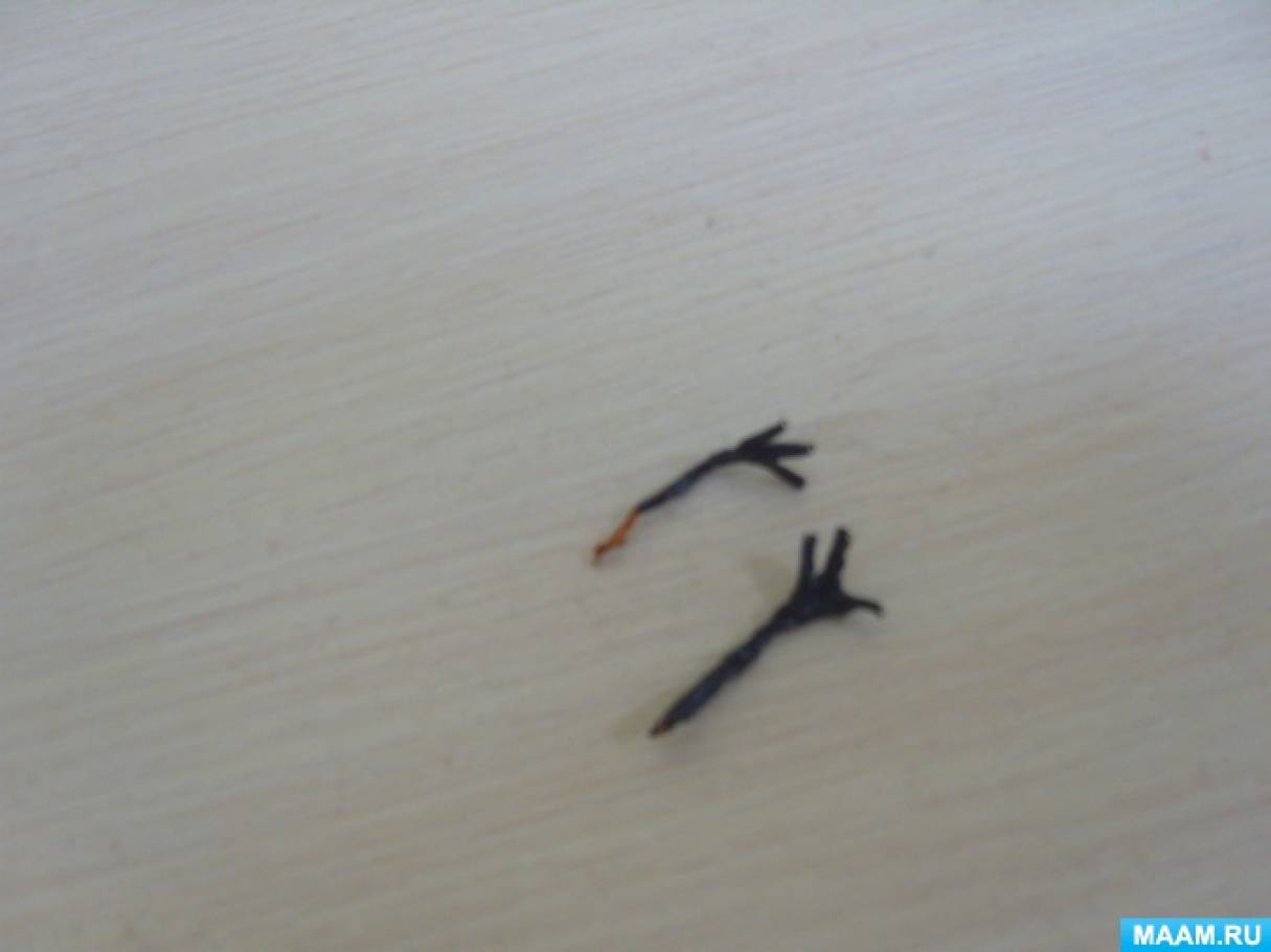 - Лапы прорисовываются фломастером или карандашом. Также можно проработать фон для птицы, например, добавить деревья или снег.