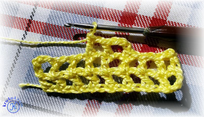 Связать цепочку из воздушных петель. Провязать один ряд столбиками с накидом. Связать несколько столбиков с накидом во втором ряду.