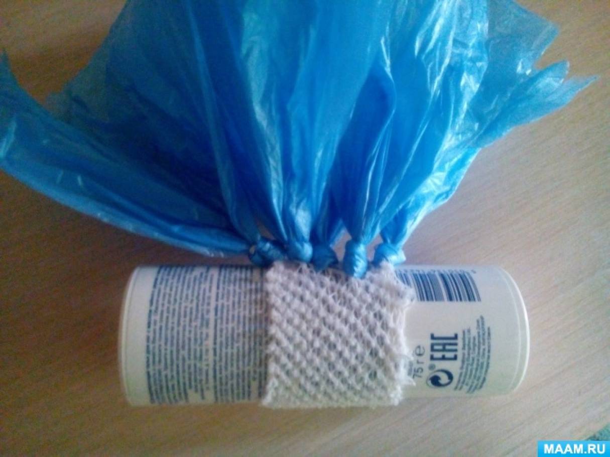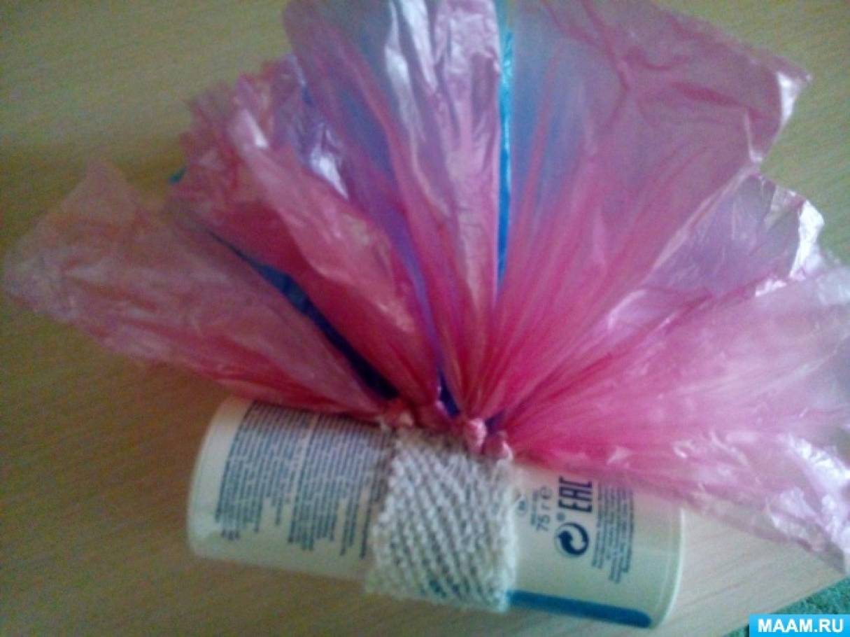Шуршащие пакеты порой сами по себе могут заинтересовать детей в самом маленьком возрасте. А если из пакетов соорудить еще и поделку, то восторгу ребенка не будет предела.