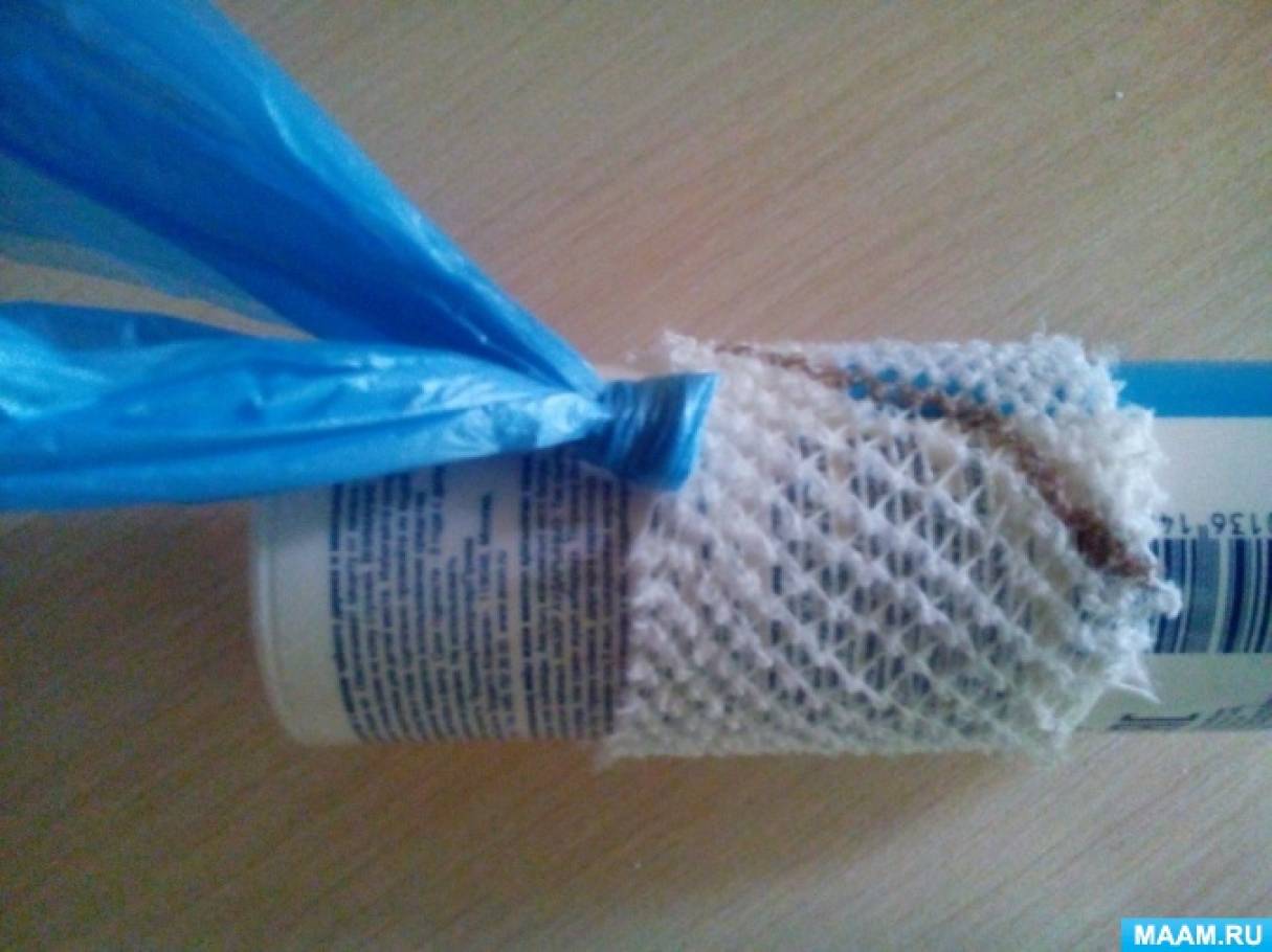 Прикладываем пакеты к палочке, подравниваем по необходимому размеру, затем оборачиваем палочку в пакет и плотно обматываем скотчем.