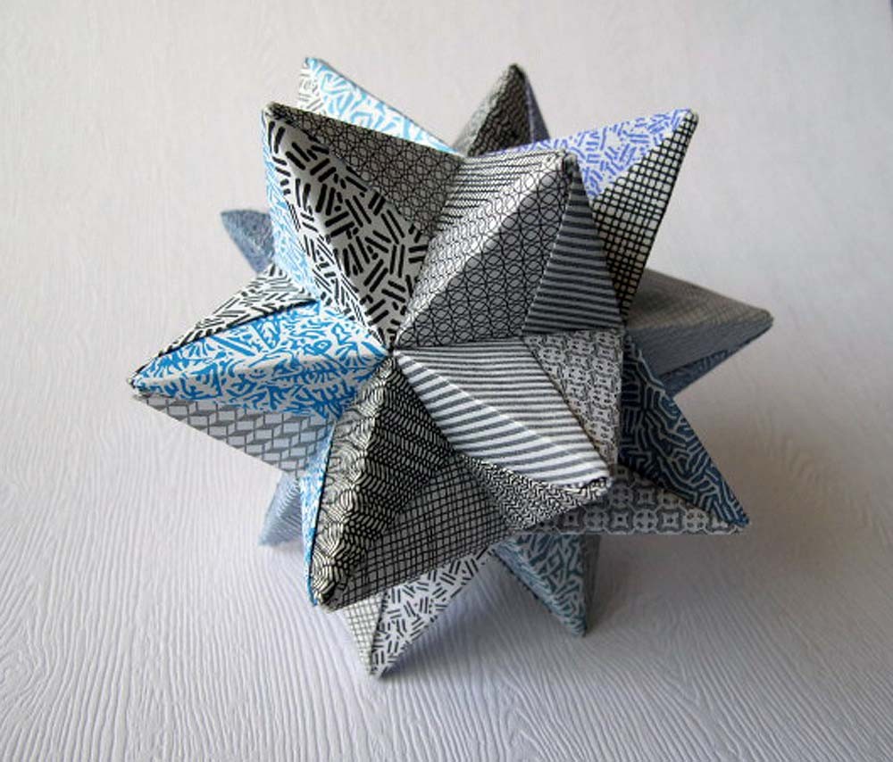 Малый звёздчатый додекаэдр-оригами представляет собой фигуру из 12 граней-пентаграмм, с пятью пентаграммами, сходящимися к вершинам. Он состоит из 30 модулей, которые складываются из квадратов, размером 8х8 см. Лучше всего использовать профессиональную бумагу-оригами, которая позволит создавать чёткие грани и жёсткие узлы, не позволяющие конструкции распадаться или деформироваться.