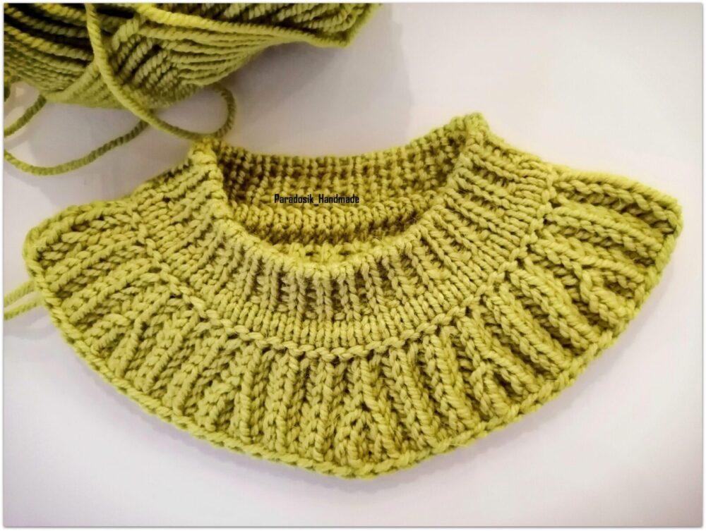 - Из набранных петель формируется ворот путем провязывания резинки 2х2 или другим выбранным узором.