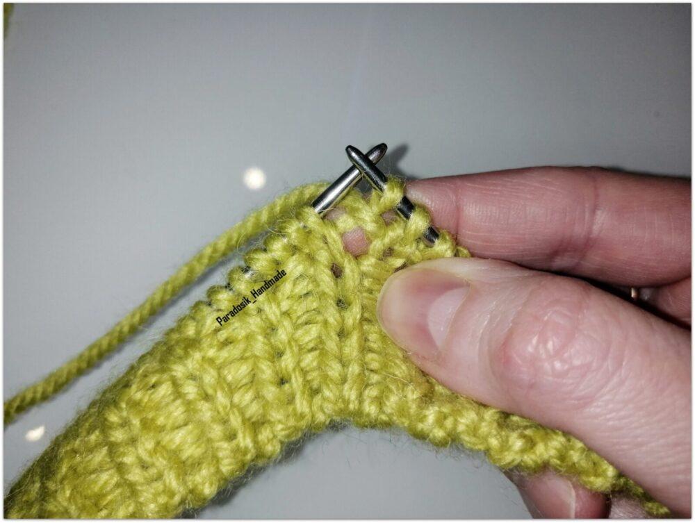 - Провязывается 9 рядов лицевой гладью. Петли остаются на рабочей спице.