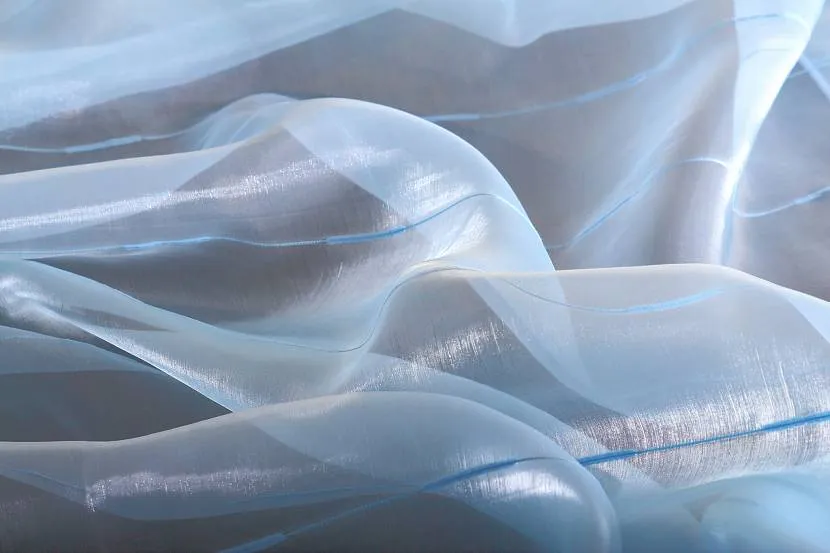- Органза — изготавливается из натуральных и синтетических материалов. Она хорошо пропускает и рассеивает солнечный свет, при этом не выгорает и устойчива к химическим моющим средствам, что делает её очень практичной.