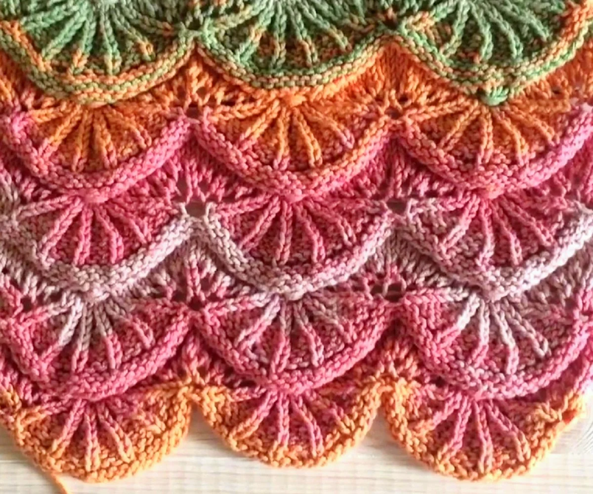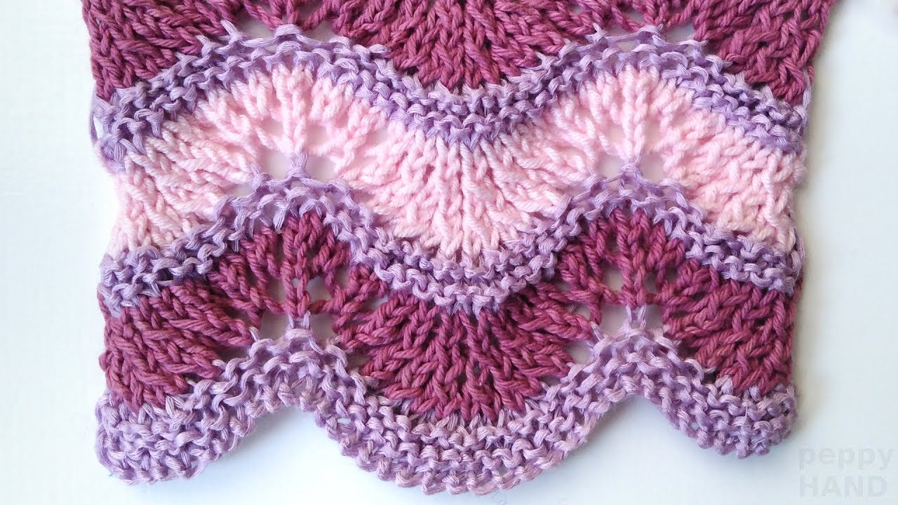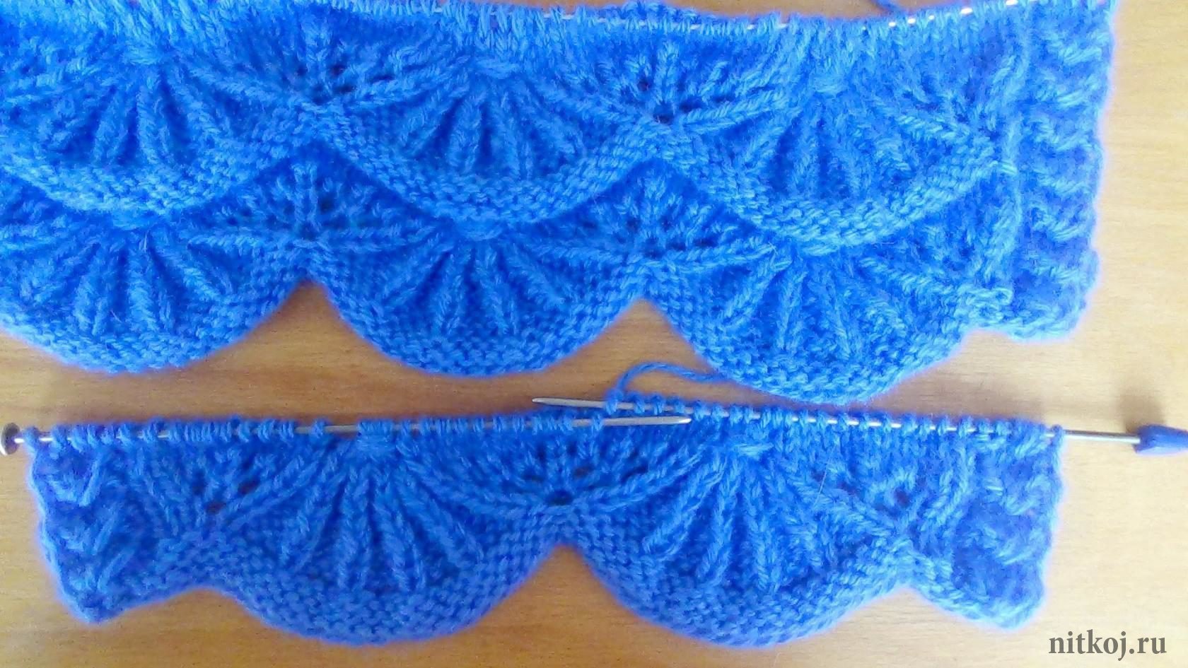 Вяжем волнистые узоры спицами по схеме «павлиний хвост»