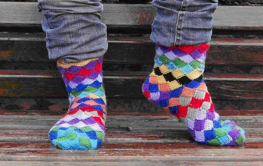 Пряжу для таких носков выбирать не толстую, полушерсть.